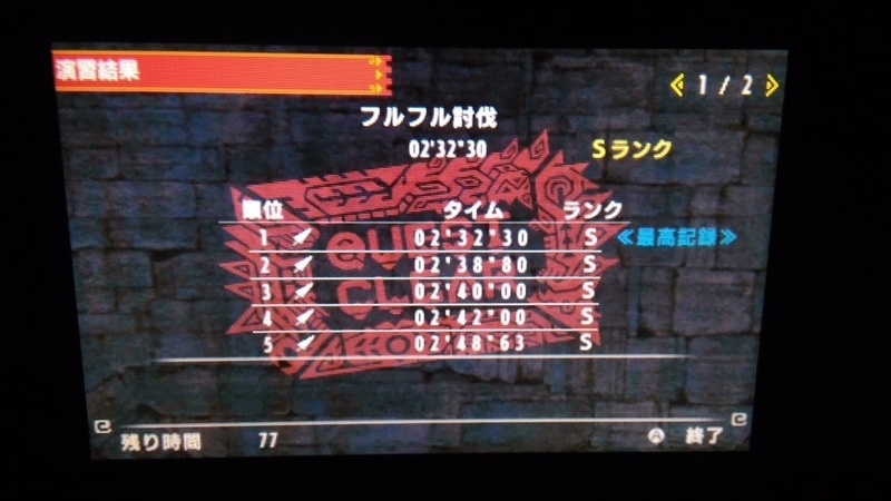 闘技フルフル ソロ槍で2分30秒代が出たので報告。